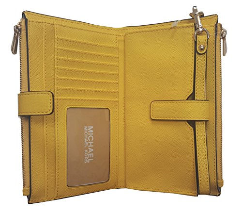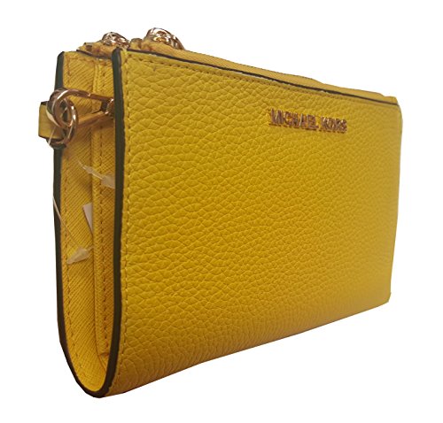 Michael Kors Jet Set Travel Double Zip Wristlet Leather Wallet 7-8 Citrus