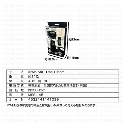 ●電源方式 乾電池式 : 単3形アルカリ乾電池2本(別売)