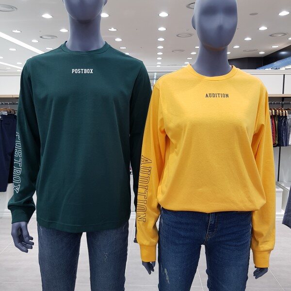 남여공용 여유있게 나온핏으로 착용감이 편하며 소재가 얇게 나와 가볍게 단독으로 입거나 이너로 입기 좋은 스타일입니다 소매에 레터링으로 포인트를 더해 멋스러운 티셔츠입니다