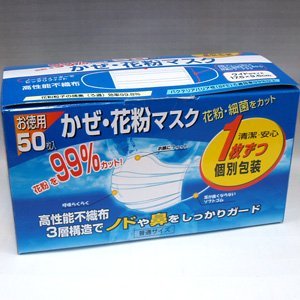 Japan Facemask - One by one wind-pollen disposable mask value pack mask 50 pieces of individually wrapped (175mm × 95mm) *AF27*