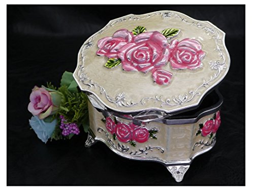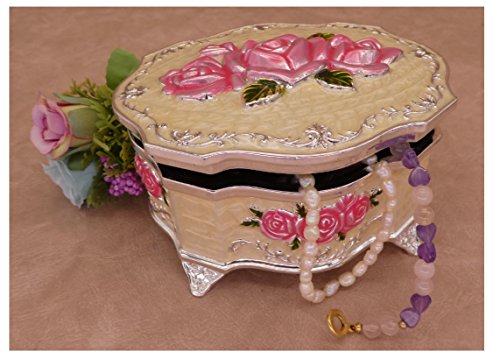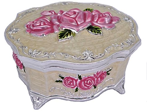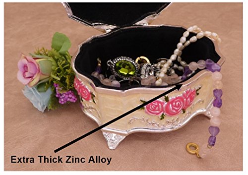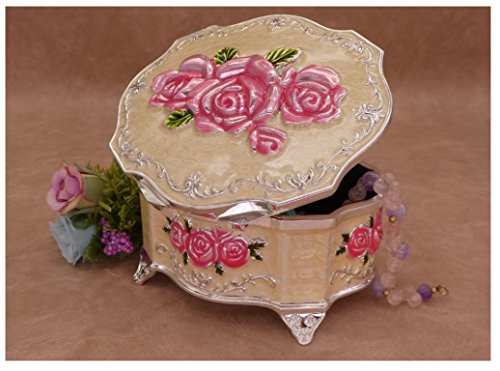 Oval Shape, Pink Rose, Extra Thick Zinc Alloy and Size (Medium) : 4.6” L x 4” W x 2.7” H (inch) ---- This jewelry box is very RARE in the market. ( EXTRA THICK Zinc Alloy Casting )