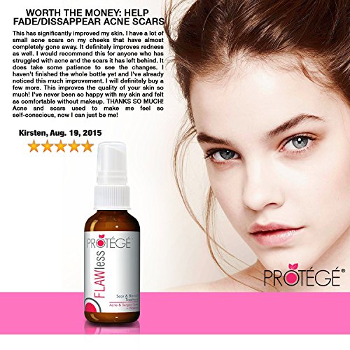-. Feature : GUARANTEED TO WORK BEST ON SCARS Diminishes skin imperfections, making them less visible. Best for women and men with acne scars, surgical scars, burn scars or any other type of blemish. Scars will fade away over time. / DRAMATIC RESULTS YOU CAN SEE In a few short weeks, scars are smoother and flatter; redness and darkness are significantly reduced. See changes quickly. / LIGHTWEIGHT AND INVISIBLE This highly concentrated, all-natural scar gel is easily absorbed, and its lightweight formula leaves no residue, color or odor. Suitable for the most sensitive skin-types, thanks to having the most effective and gentle scar-fading ingredients Nature has to offer including EGF Peptide, Green Tea, Gotu Kola and Astaxanthin. Together, they work to restore your flawless skin. / MULTIPURPOSE Works on any type of blemish, anywhere on your body, including acne scars, keloids, rosacea, bruises, erythema, atrophic scars, dark spots, spider veins, hypertrophic scars, pregnancy scars, surgery scars, burn scars, traumatic scars, breast implant scars, chicken pox scars and many more. / ★COMPLETE GUARANTEE★ Protege goes beyond Amazon's 30 Day Guarantee with a 365 Day Money Back Guarantee. If you are not satisfied, simply contact Protege for a FULL refund. No questions asked. NOTHING TO RETURN. You risk nothing when you order FLAWless, So order now!