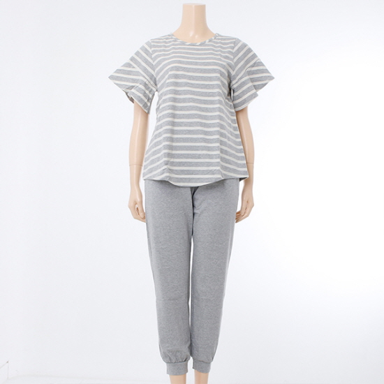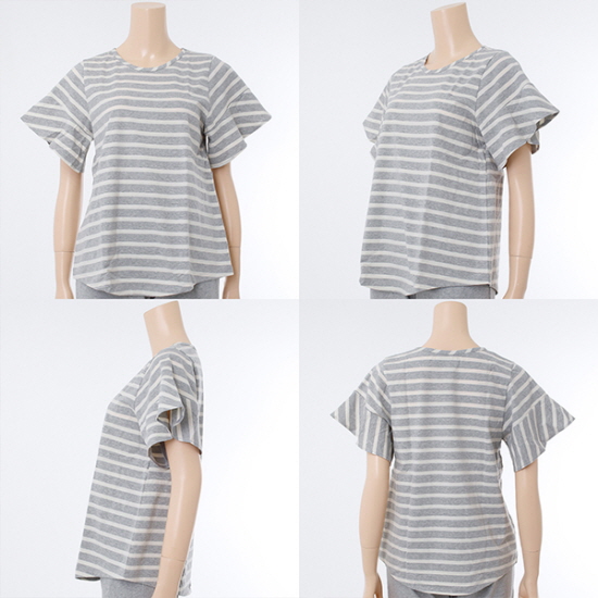 베이직한 그레이 컬러감의 스트라이프 상의입니다.
