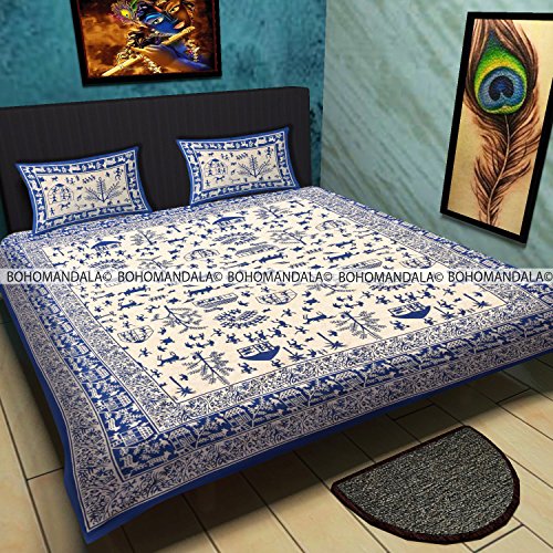 Set Of 3 Beautiful Cotton Double Bedsheet Bedcover Bedspread With Matching Pillow Cases Beautiful Print By Bohomandala