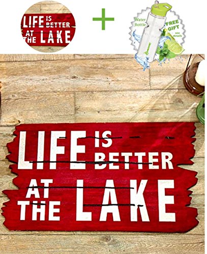 -. Title : Gift Included- Better at the Lake Front Door Floor Mat At-the-Shore Entrance Way Theme Doormat + FREE Bonus Water Bottle byHomecricket