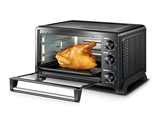 ReleaseDate : 2017-10-06 Studio : Toshiba Publisher : Toshiba Binding : Kitchen Product Description This multi-functional Toshiba toaster oven with convection has a six-slice Capacity and features a stainless steel front that will compliment any kitchen. It's large enough for making a family meal, but won't take up much counter space. Simple to operate - select toast, bake, or broil with a simple turn of the knob. Enjoy toast exactly how you like it with innovative accu-timer technology. The oven temperature can be set from 150 to 450 degrees for up to 60 minutes, or use the stay on function for longer cooking times. Upper and lower heating elements and a convection fan provide even cooking. The adjustable rack gives flexibility to cook multiple types of food, and rack positions for broil, pizza, cookies, and bagels are clearly marked. Easily reach hot food with the auto-glide rack that slides out as the door is opened. A removable crumb tray simplifies cleaning. One baking tray is included. 0