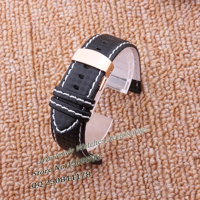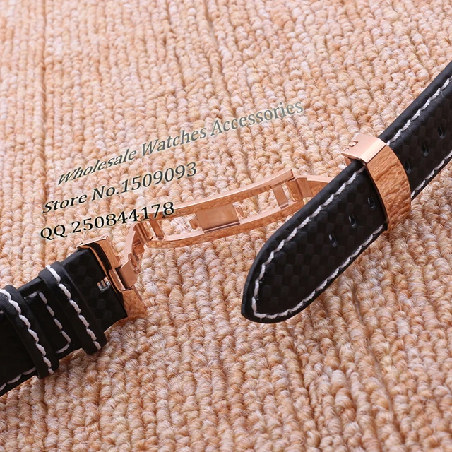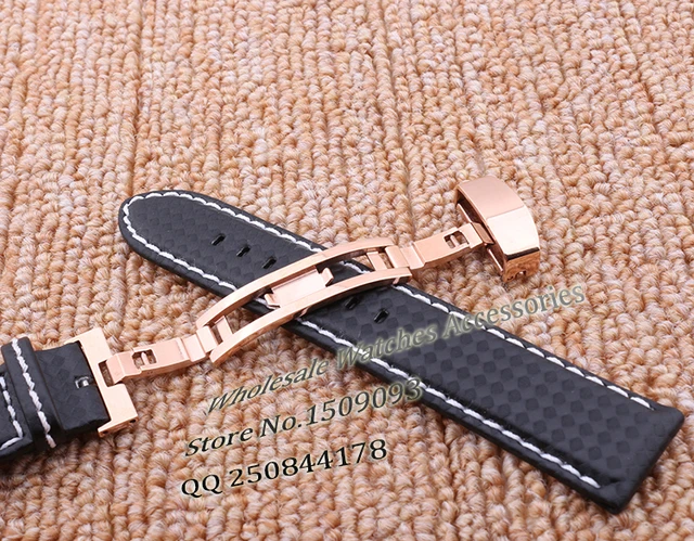 | [해외] 새로운 도착 2015 탄소 섬유 패턴 시계 밴드 스트랩 바닥 흰색 Rosegold 버클 배포 22 미리메터 시계 액세서리 |