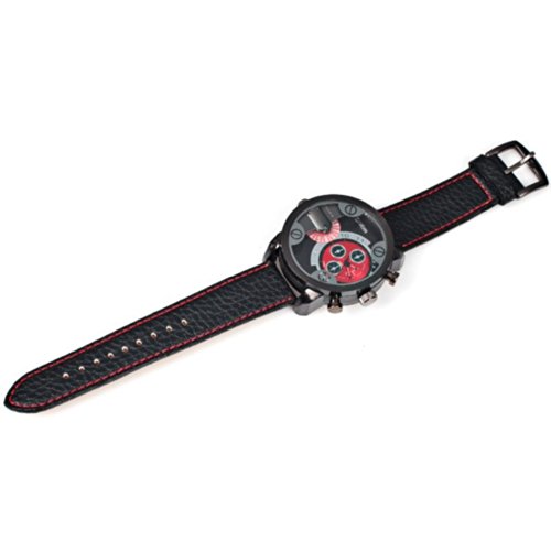 -. Title : Oulm Ori-0457 男性用の腕時計と二重動き番号ストリップ時間マーク ダイヤル革バンド丸赤