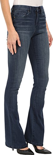 Jeans boast a stunning high rise and a slim fit through the thigh that breaks above the knee to a wide, flared leg. Medium wash features an even blue hue with a subtle grey tint. 3-D whiskers, light hand sanding, and lightly applied grinding at the edges finish the look. Stretch denim fabrication. Leather brand patch at back. Inset rivet detail at the back left pocket. Five-pocket design. Belt-loop waistband. Zip fly with button closure. 66% cotton, 21% rayon, 11% polyester, 2% spandex. Machine wash and tumble dry. Imported.