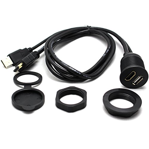 -. Feature : 1, USB & HDMI Socket flush mount dash extension cable; / 2, Ideal for extend and accomplish the HDMI data transfer in your car, boat, motorcycle, support very easy access to your accessory inputs / 3, Use an existing hole or cut a hole in your dashboard and clip in the socket to flush mount it to your vehicle's dash / 4, 1M length cable, socket panel design; / 5, Package: 1 x USB & HDMI Dash mount cable.