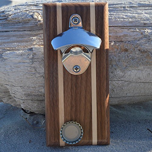 -. Binding : Kitchen -. Brand : Nason's of Maine -. Color : Walnut with Maple Inlay -. EAN : 0682017205335 -. Feature : Power: Openers hidden magnet easily catches over 65 bottle caps / Quality: Made from beautiful American walnut hardwood / Ease: Magnetic mounting included for instant use / USA made: Handcrafted in Maine - please beware foreign copycats on amazon / Stock: If stock is low please visit our Nason's of Maine website -. Label : Nason's of Maine -. Manufacturer : Nason's of Maine -. Model : Walnut & Maple Inlays -. MPN : Walnut & Maple Inlays -. PackageQuantity : 1 -. PartNumber : Walnut & Maple Inlays -. ProductGroup : Kitchen -. ProductTypeName : KITCHEN -. Publisher : Nason's of Maine -. Size : 8x3.5x.75 -. Studio : Nason's of Maine -. Title : Nason's of Maine Magnetic Bottle Opener and Cap Catcher -. UPC : 682017205335 -. Warranty : Free returns for unsatisfied customers