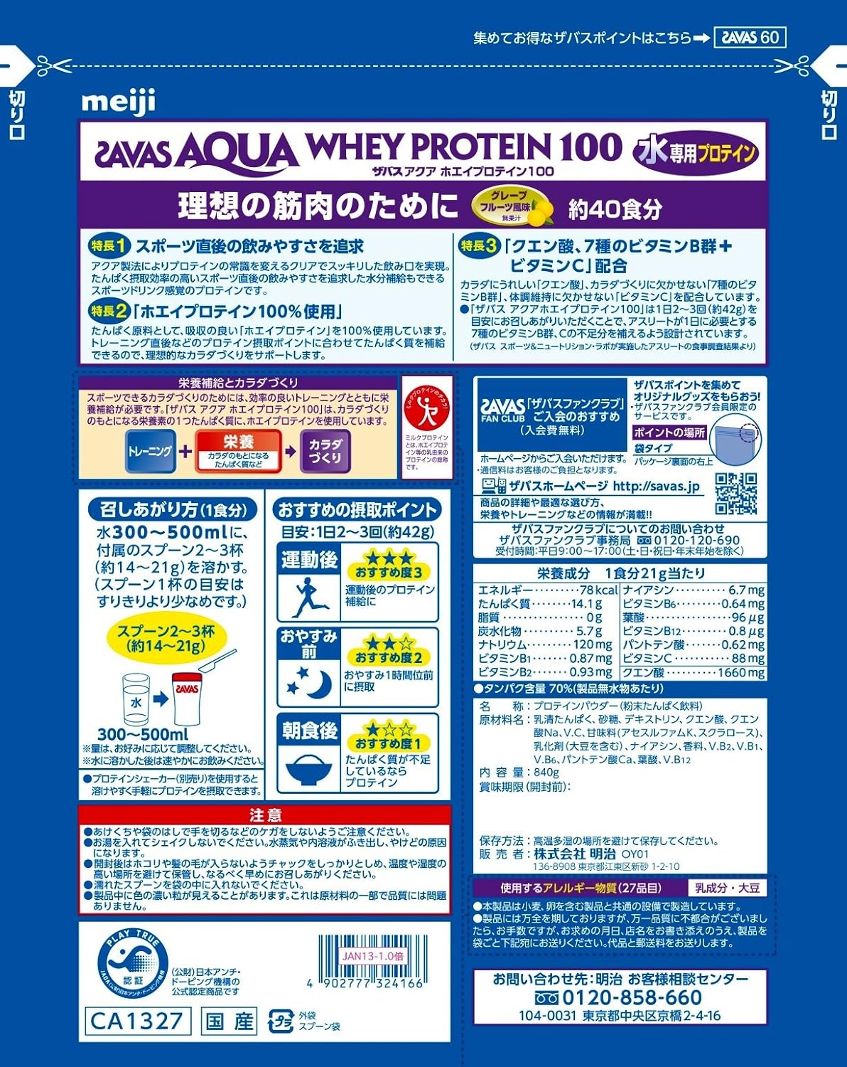 カロリー:1食分(21g)当たり エネルギー78kcal