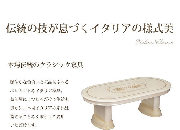 芸術作品ともいえるイタリア直輸入家具をご自宅に☆ヴェローナエレガントセンターテーブル。艶やかな色合いが気品あふれるエレガントな本場伝統のクラシック家具です。