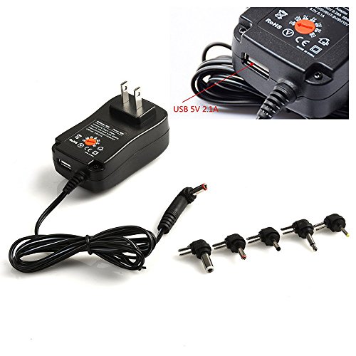 -. Feature : Universal AC Plug-in Adapter Power: 30W / Input:AC 110V to 240V, 0.25A, 50/60Hz.Output: 3V/4.5V/5V/6V/7.5V/9V/12V / USB OutPut: 5.0V 2.1A, Length of cable is 180cm/5.9ft / Six detachable DC output plugs, so that it will fits 95% of AC/DC appliances / Rio de Janeiro 2016 Olympic Games approaching, the Olympic Games you love, is not to prepare a multi-function universal charger up?Especially for photographers
