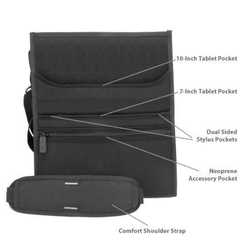 -. Feature : Heavy-duty exterior with scratch-resistant interior protects your Alcatel One Touch Pop , Sony , Toshiba or Lenovo tablets and keeps it pristine during your travels / Two primary pockets designed to simultaneously fit both a 10 inch tablet and a 7 inch tablet. (Primary Pocket) Maximum Dimensions: 11 x 9 x .5 Inches / (Secondary Pocket) Maximum Dimensions: 11 x 5.5 x .5 / Includes one stretch neoprene pocket, one front side zipper pocket, and dual sided stylus pockets to keep your memory cards, writing utensils, and other accessories safe / Carabineer belt support allows for a one handed un-holstering and additional security / Quality Guaranteed - Backed by a Manufacturer's 3-Year Warranty
