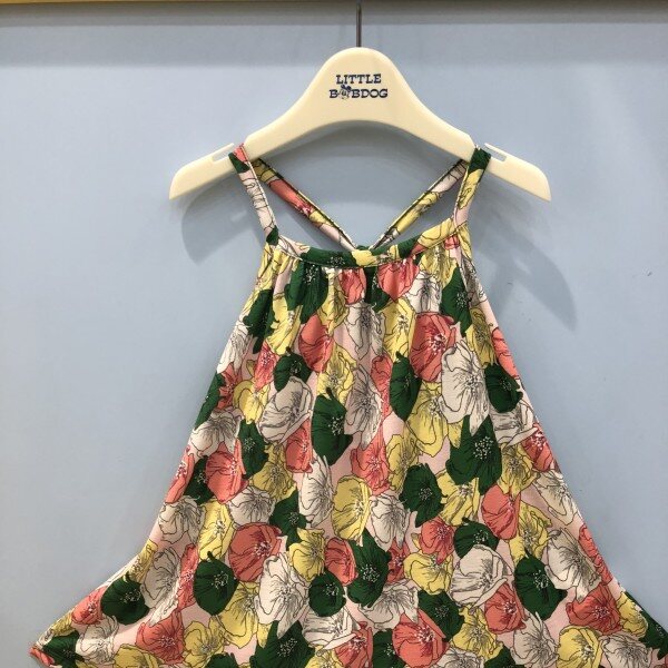 화려한 색감의 휴가철에 딱 어울리는민소매 원피스입니다티셔츠와 레이어드 해서 입기도 하고 볼레로나 가디건을 활용하셔도 됩니다~