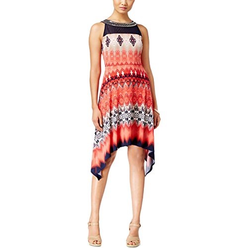 Product DescriptionSleeveless ITY uneven hem halter top dress with embellished neck0