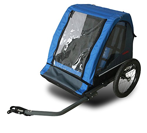 The perfect trailer for your neighborhood excustions or for use on the road. Rugged steel frame construction offer great protection and longevity for years of use. The compact design is roomy in the cabin but folds away completely flat for easy transport or seasonal storage. The DUO also functions as a trailer for pets or simply for cargo with a net capacity of 100lbs!