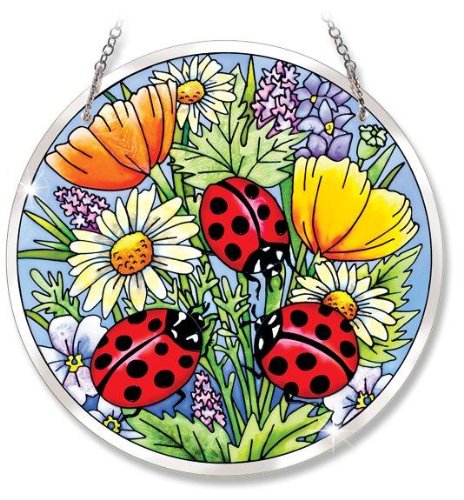 Amia Beveled Glass Circle Suncatcher Ladybug Design, 6-1/2-Inch, Large