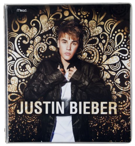 Mead Justin Bieber 1-Inch Heat Sealed Binder, Gold Swirl (72086)