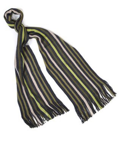 Green Tone Striped Pattern 100% Acrylic Men's Scarf with Tassels
