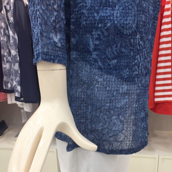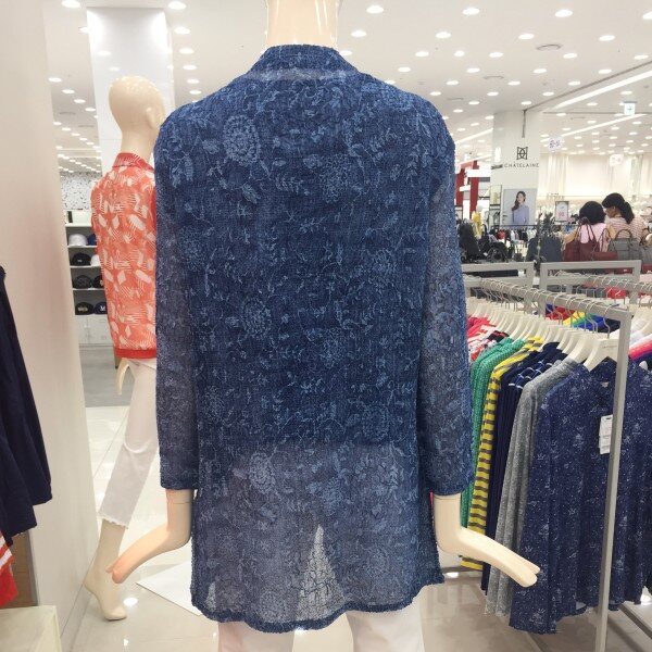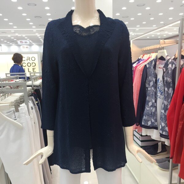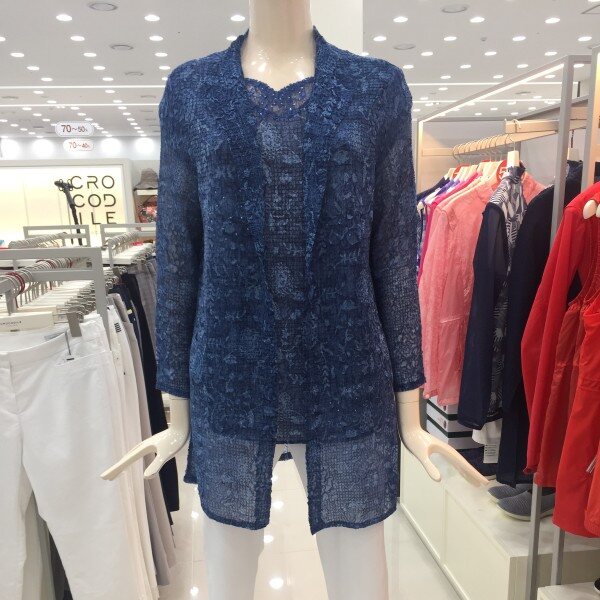 잔잔한 프린트가 보이는 쉬폰 소재의 주름 블라우스. 자켓형태의 걸치기형 블라우스. 세트 착장과 크로스 착장이 용이한 아이템.(이너로 입으실수 있는 민소매 브라우스는 별도로 구매하셔야 합니다. 이너 브라우스 품번은 CL8MBL128 입니다)