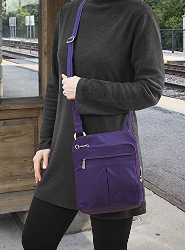 -. Binding : Apparel -. Brand : Travelon -. Department : unisex-adult -. Feature : 2 roomy compartments / Main compartment is large enough to hold an iPad or tablet and has a zip wall pocket / Front compartment has interior organizer with RFID blocking card and passport slots, zip wall pocket and deep drop pocket / Front zip pocket and full slash rear pocket, tethered key clip with led light / 9 x 10.5 x 2 -. Label : Travelon -. Manufacturer : Travelon -. NumberOfItems : 1 -. PackageQuantity : 1 -. ProductGroup : Apparel -. ProductTypeName : LAGE -. Publisher : Travelon -. Studio : Travelon -. Title : Travelon Anti-Theft Classic Lite Slim Bag