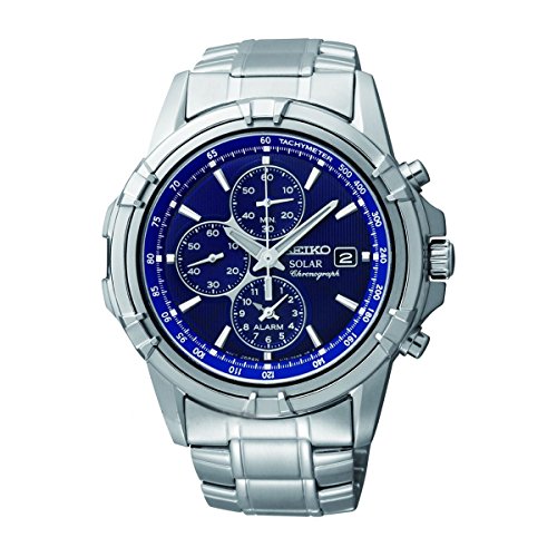 -. Title : Seiko Men's Solar SSC141 Silver Stainless-Steel Quartz Watch with Blue Dial