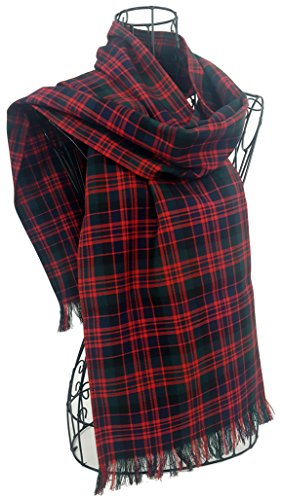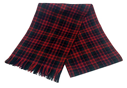 Binding : Apparel Product Description These tartan scarves are perfect if you're allergic or sensitive to wool! Made in the USA from light weight poly/viscose tartan that is woven in the U.K. They are a great way to represent your heritage or add a splash of tartan in any setting. Approximately 10" wide by 68" long. Debra L. I got this for my grand-daughter who thought she could never have anything in her tartan. The colors are brilliant, the texture is soft, and the length was just right for her. Thank you for offering a quality product. Beath, Beaton, Bethune, Bowie, Colson, Connall, Connell, Darroch, Donald, Donaldson, Donillson, Donnelson, Drain, Galbraith, Gilbride, Gorrie, Gowan, Gowrie, Hawthorn, Hewison, Houstoun, Howison, Hughson, Hutcheonson, Hutchinson, Hutchison, Isles, Kellie, Kelly, Kinnell, Mac a' Challies, MacBeth, MacBeath, MacBheath, MacBride, MacCaishe, MacCall, MacCash, MacCeallaich, MacCodrum, MacColl, MacConnell, MacCook, MacCooish, MacCrain, MacCuag, MacCuish, MacCuitein, MacCutcheon, MacDaniell, Macdrain, MacEachern, MacElfrish, MacElheran, MacGorrie, MacGorry, MacGoun, MacGowan, MacGown, MacHugh, MacHutchen, MacHutcheon, MacIan, Macilreach, Macilriach, Macilleriach, Macilrevie, Macilvride, Macilwraith, MacKean, MacKellachie, MacKellaig, MacKelloch, MacKiggan, MacKinnell, MacLairish, MacLardie, MacLardy, MacLarty, MacLaverty, MacLeverty, MacMurchie, MacMurdo, MacMurdoch, MacO'Shannaig, MacQuistan, MacQuisten, MacRaith, MacRorie, MacRory, MacRuer, MacRurie, MacShannachan, MacSorley, MacSporran, MacSwan, MacWhannell, Martin, May, Murchie, Murchison, Murdoch, Murdoson, O'Drain, O'May, O'Shannachan, O'Shaig, O'Shannaig, Purcell, Revie, Reoch, Riach, Rorison, Shannon, Sorley, Sporran, Train, Whannel. MacDonald Clan Motto: Per Mare Per Terras (By sea and land) 0