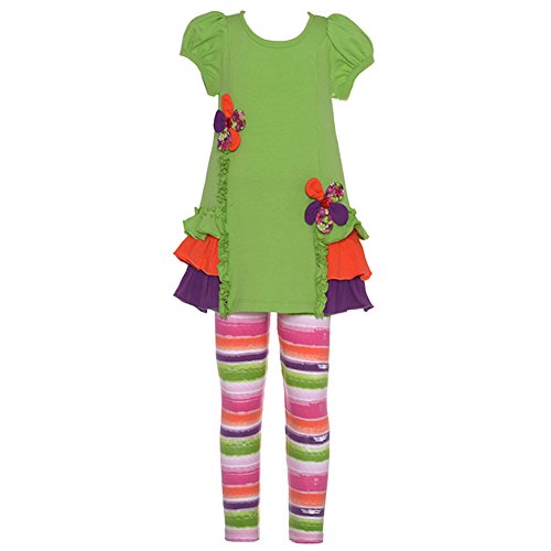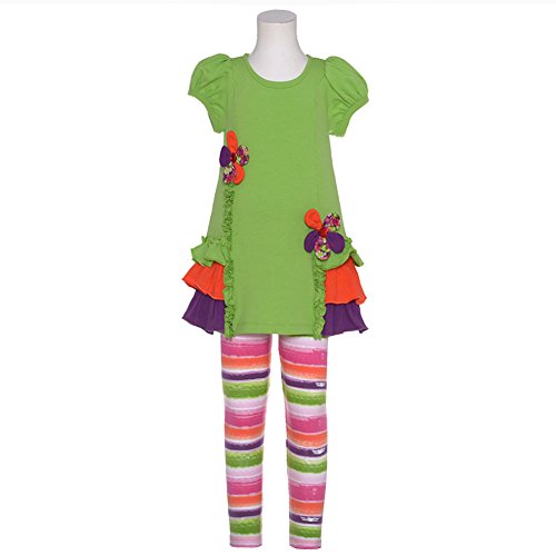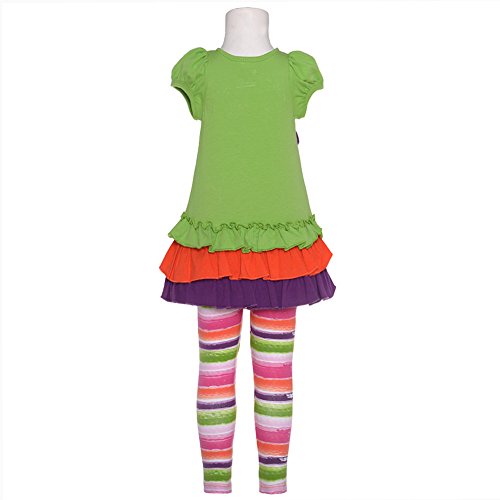 -. Title : Bonnie Jean Green Multi Color Stripe Ruffle Tier Outfit Baby Girl 3-24M