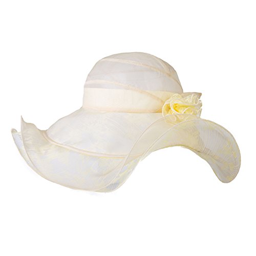 Product Description Applicable Scenarios: Travel Type:Visor Cap The Style Of The Hat Top:Dome Brim Style:Long Brim Shape: Curling Main Material:Silk Gauze Group:Female Style:Elegant Style Details:Flowers Applicable Season:Summer
