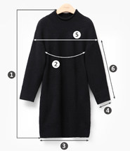 尺码 ①衣长 ②胸围 ③下摆围 ④袖口围 ⑤肩宽 ⑥袖长