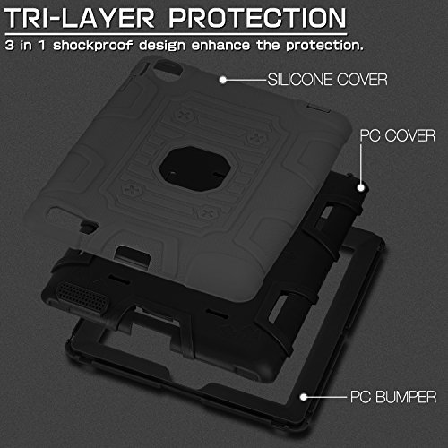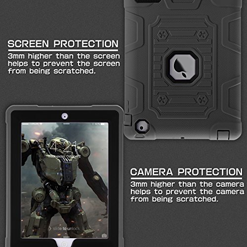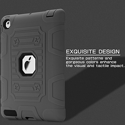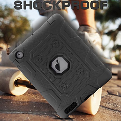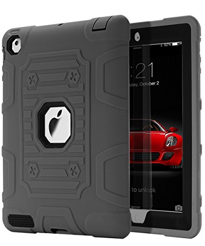 TOPSKY [Kids Proof] iPad 2 Case,iPad 3 Case,iPad 4 Case,Shock-Absorption High Impact Resistant Hybrid Armor Defender Shockproof Case Cover For iPad 2/3/4 (Only For 9.7 inch iPad),Grey-Black