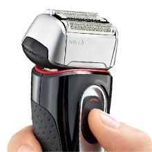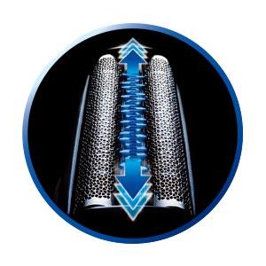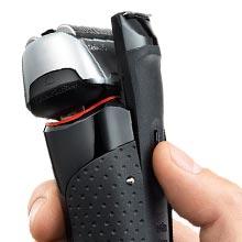密着3Dヘッド あらゆる肌の凹凸に対応する、フレキシブルな首振りヘッドを搭載。前後に動くヘッドとサスペンション機能により、顔の曲面に密着。肌に押しつけずに、より多くのヒゲをとらえて深剃りします。 |