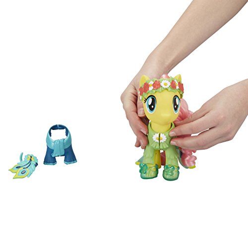 All dressed up with someplace to go! Fluttershy has a sweet, graceful style for any friendship celebration! Style this Fluttershy pony figure with her pretty celebration outfits that can be changed in a snap! The colorful skirts are great for any party-loving pony. This Fluttershy pony figure can dress it up or down with her accessories! Share outfits and accessories with other Snap-On Fashion pony figures for fashion mix and match! (Each sold separately. Subject to availability.) My Little Pony and all related characters are trademarks of Hasbro.Feature