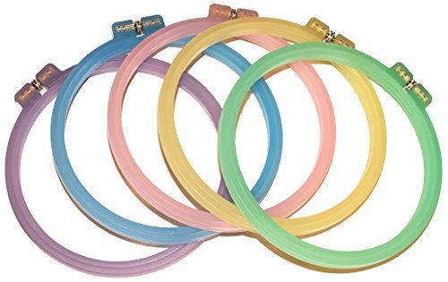 - COLOR CODING RINGS: Features 5 embroidery hoops with an exclusive selection of 5 translucent pastel colors (yellow, green, pink, blue, purple) that allow serious embroiders to multi-task and color code individual projects