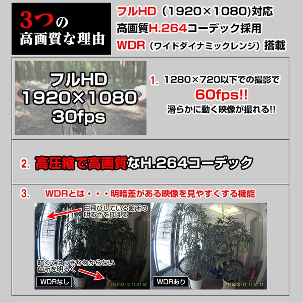 ワイドダイナミックレンジ機能搭載の高画質撮影ができるカメラです。