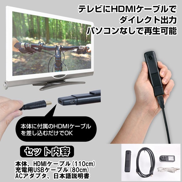 ■付属品:本体、HDMIケーブル(110cm)、充電用USBケーブル(80cm)、ACアダプタ、日本語説明書