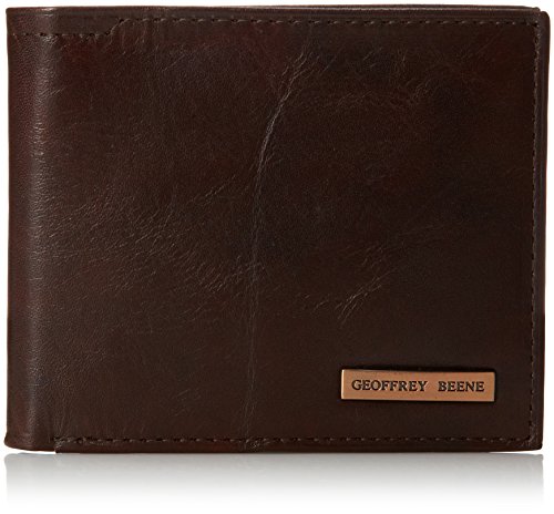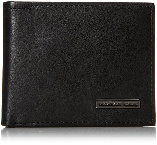 Geoffrey Beene Men's Double Billfold with Polished Plaque Logo, Black/Gunmetal, One Size