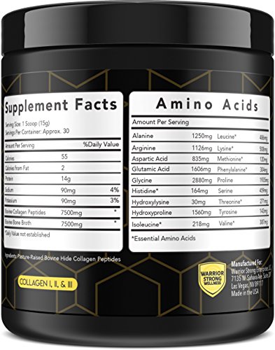 -. Title : Collagen Peptides & Bone Broth by Warrior Strong Wellness: Pure Grass-Fed Hydrolyzed Collagen Powder Boost for Healthy Skin, Nails, Hair, Joints & Muscles, No Gluten, Non-GMO Unflavored 16oz
