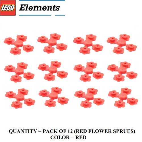 -. Title : L.E.G.O Parts: Plant Flower Small, Sprue of Four (PACK of 12 Red Flower Sprues)