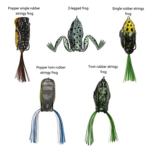 Different kinds of frog lures (2-legged frog, frogs with skirts, popper frogs with skirts) to choose from, essential addition to any tackle box