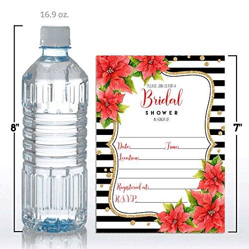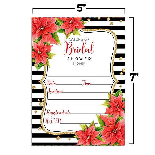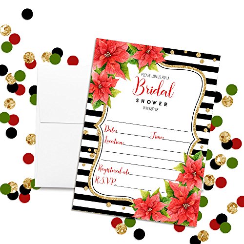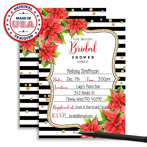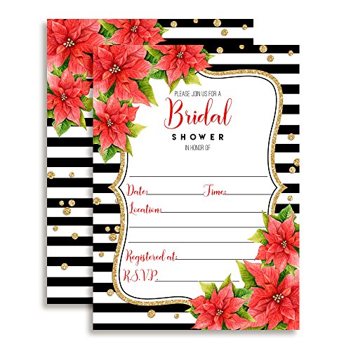 - Stunning Floral Design: Designed by a talented mom, these beautiful cards feature gorgeous poinsettias, black and white stripes with digital glitter border and confetti for a gorgeous Holiday Bridal shower invitation. The bride to be will love the elegance. ©Amanda Creation. Original design by Amanda Creation™