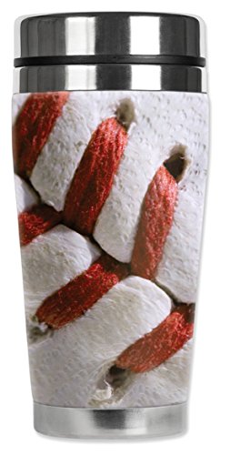 Mugzie 704-MAX "Baseball Stitching" Stainless Steel Travel Mug with Insulated Wetsuit Cover, 20 oz, Black