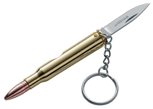 Feature : Interesting replica of a 30-06 bullet with a compact and functional blade / Features a 440 stainless steel blade / Brass coated shell and key ring / Blade length: 1 3/4 in. Overall length: 4 3/4 in. Weight: 1.4 oz. / Limited Lifetime Warranty