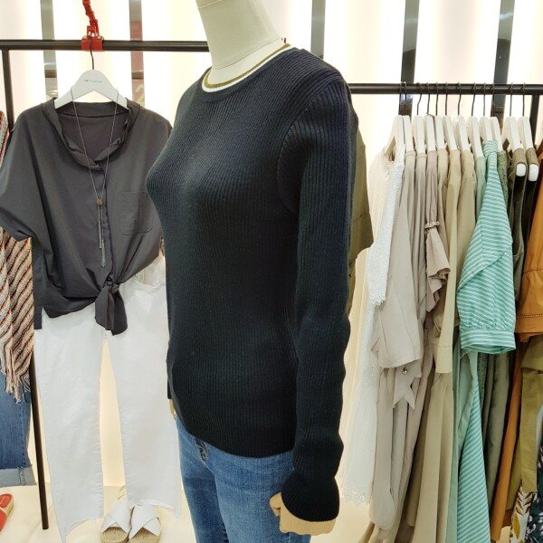 캐쥬얼하면서도 페미닌한 실루엣의 슬림핏니트입니다.니트 특유의 신축성이 좋으며 착용감이 편안하고 라운드넥의 2단컬러 배색이 포인트로 매력적인 이너입니다.