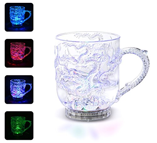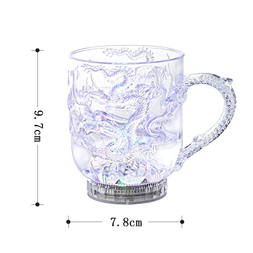-. Feature : This dragon shaped plastic LED cup is a very nice holiday gift for holidays, Halloween, new year's, wedding parties / Glow in the dark party supplies.Flickering in the darkness with dreamlike feeling, enjoy different drinking moment with this vivid mug. / Two lighting modes, make your life vivid and colorful. Eye catching LEDs: Auto color fading + flashing / Perfect for party and house decoration uses, suitable for parties, bars, characteristics, wedding party with activity.(such as drink competition, see who is the first to finish the drink and turn off the LED) / Christmas Birthday gift for your family children friends: ★ It would also be a nice glass for a family and this can be the birthday glass that someone would drink from if they are the birthday person. Good choice for your children friends's Christmas Birthday gift.