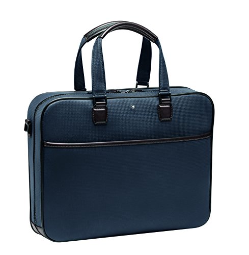Product Description The Montblanc Extreme Document Case Slim is crafted using an innovative and highly resistant leather in a subtle, woven carbon print that can stand up to abrasion, water and heat, with brown leather details. The brand new blue colour with trimming in brown plain leather enhances the informal look. Its slim yet spacious profile, closed with a zip, can accommodate a laptop inside the padded pocket along with A4-sized documents. It offers further space with a zipped pocket, 2 open mobile phone pockets, 3 leather loops for writing instruments and 2 small open pockets for other documents. Comfortable leather handles, an adjustable and detachable black shoulder strap, and a satellite system to attach the bag to a trolley give the document case multiple carry options. 0