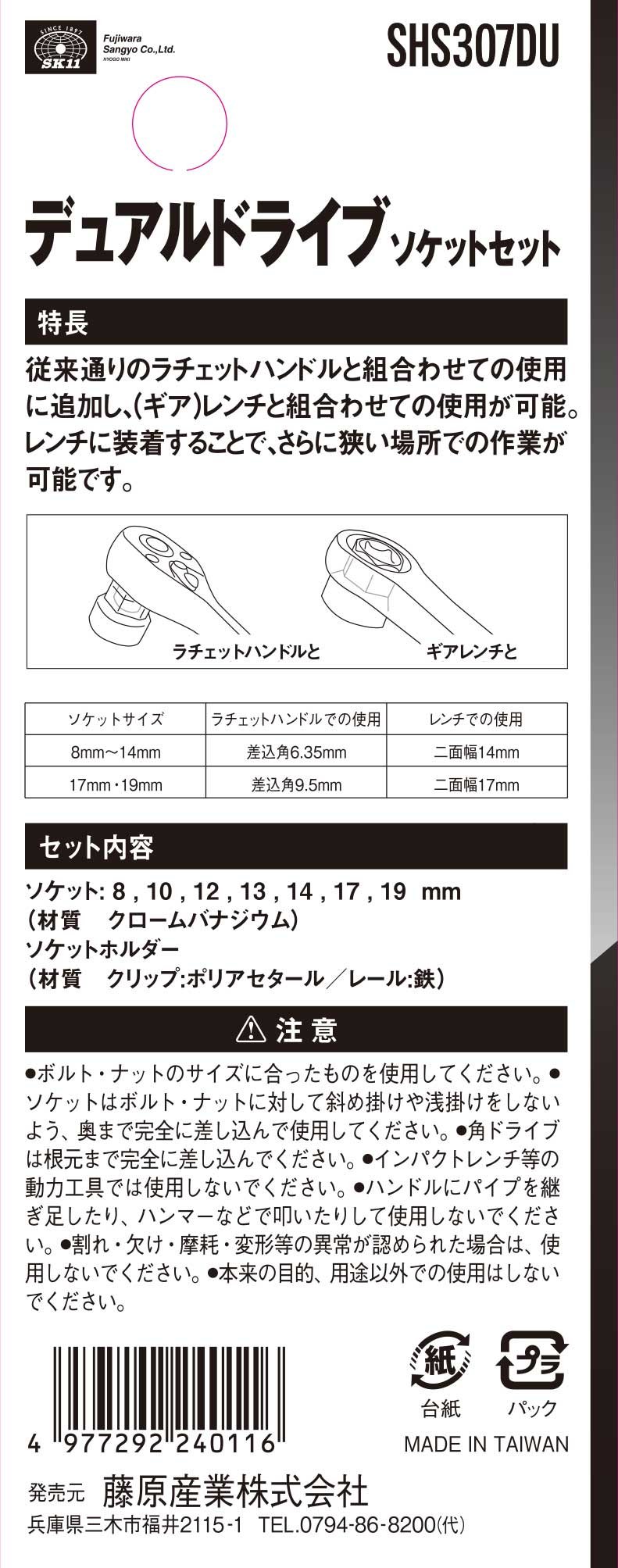 ● Socket size 8 to 14 mm can be used with insertion angle 6.35 ratchet handle and use with a gear wrench 14 mm