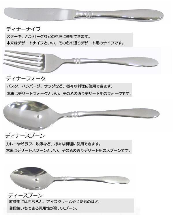 | セット内容 | ディナーナイフ、ディナーフォーク、ディナースプーン、ティースプーン:各5本 |